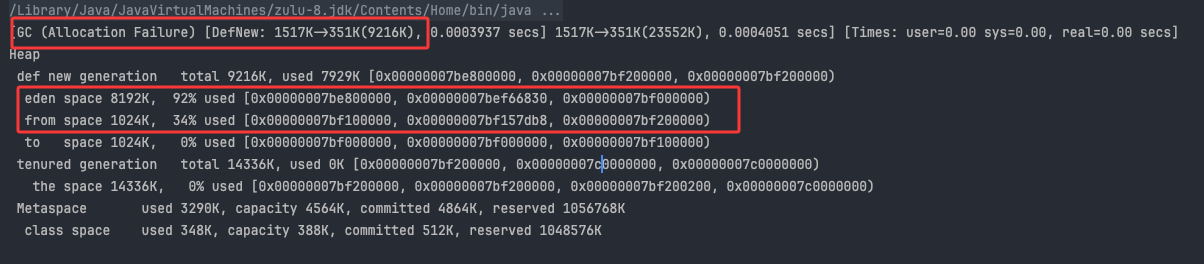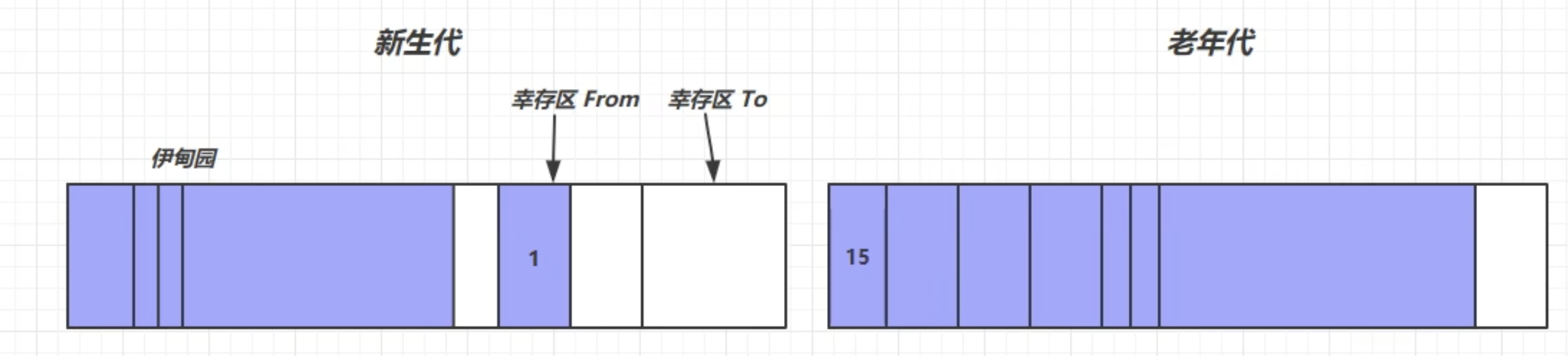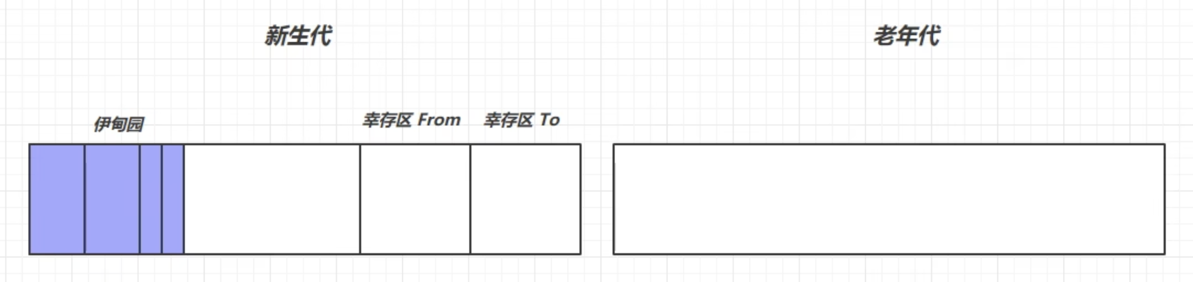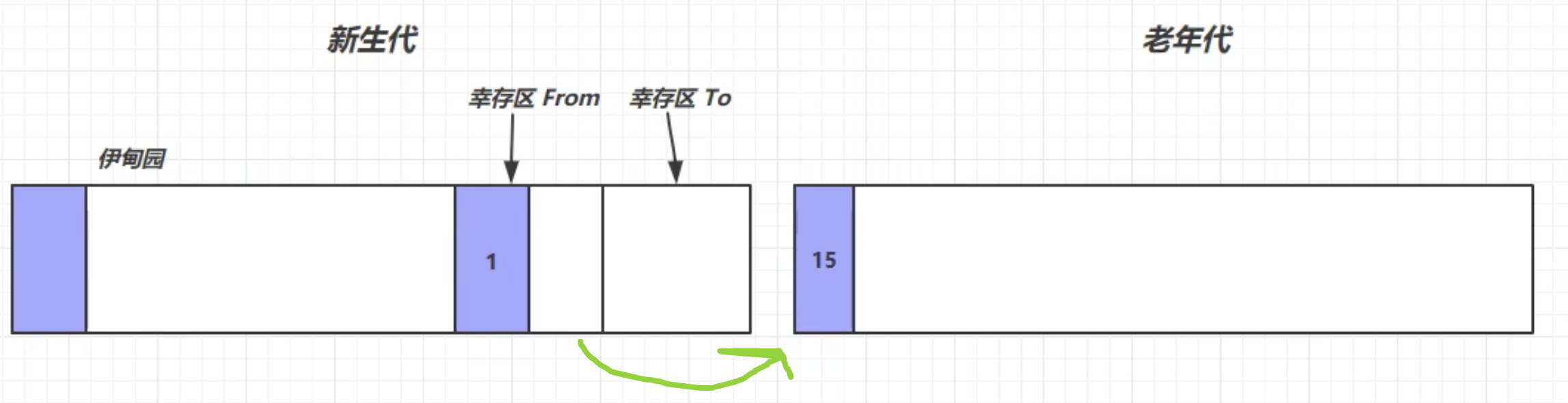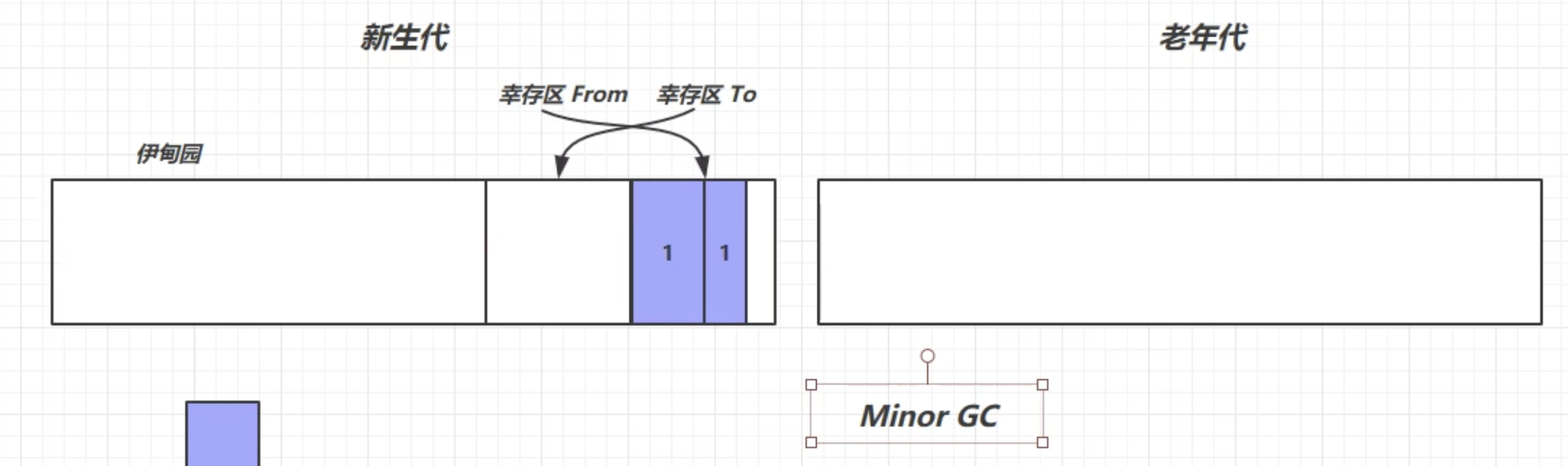 1mb from; 1mb to; eden 8mb放入7mb,触发GC