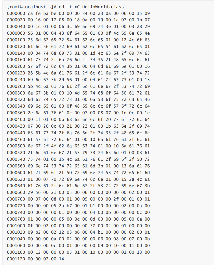 编译为 HelloWorld.class 后是这样的