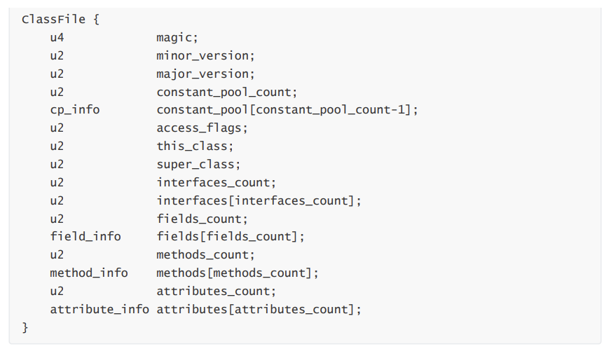 根据 JVM 规范,类文件结构如下