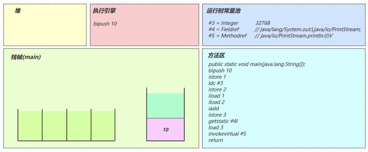 6)执行引擎开始执行字节码 bipush 10