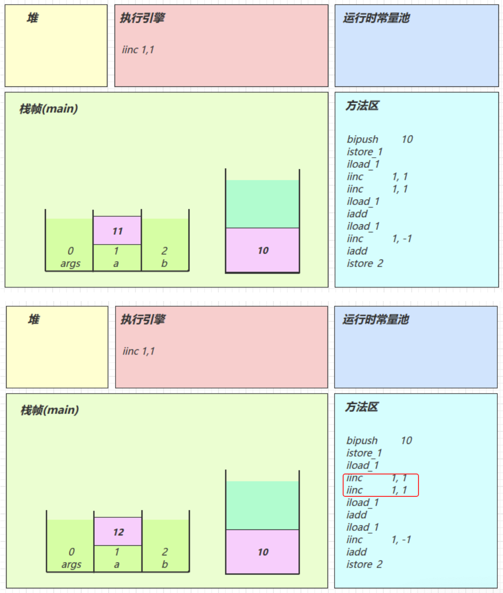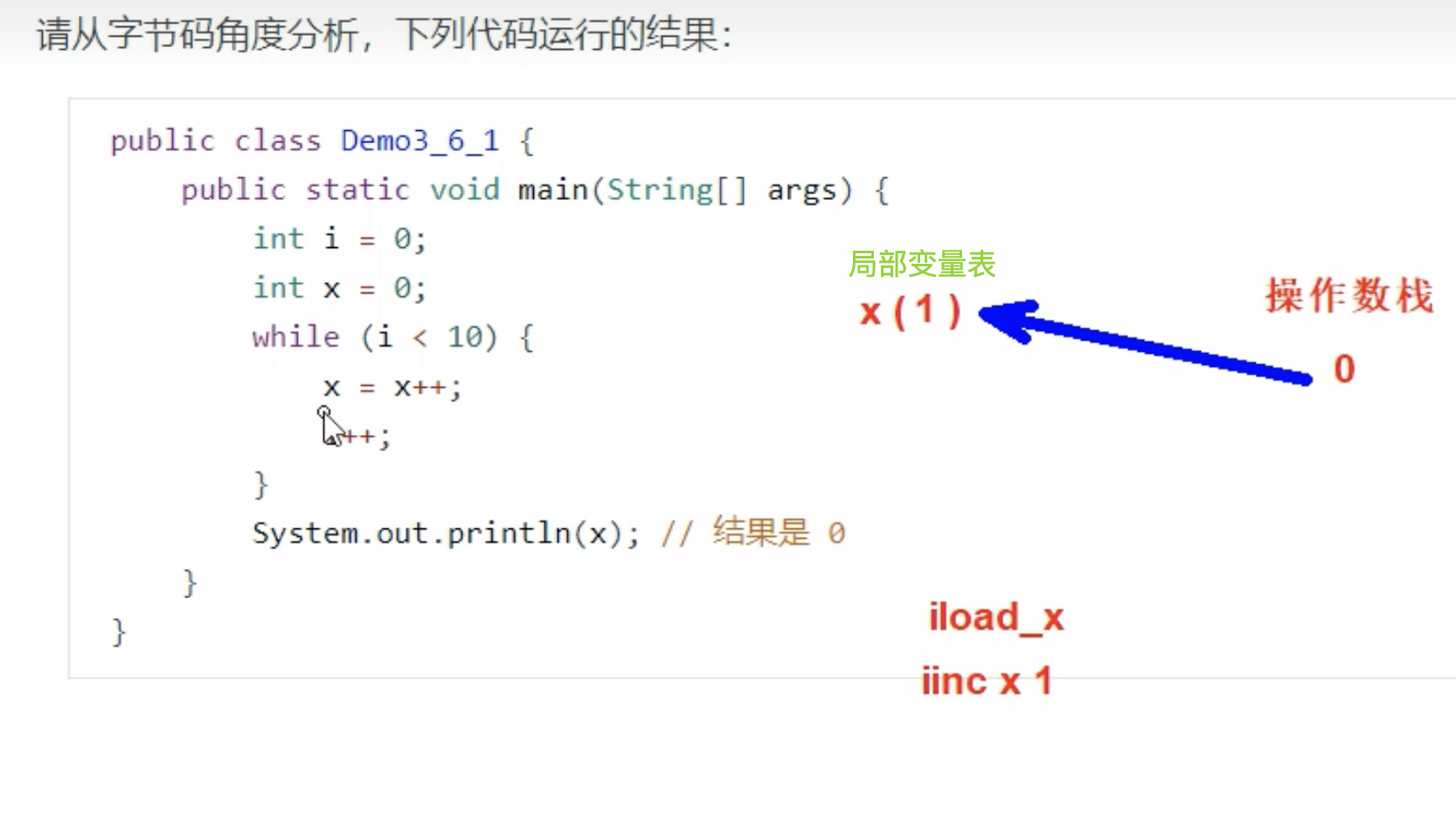 x在局部变量表slot执行iinc x 1 局部变量表x为1