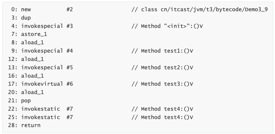 最终方法(final),私有方法(private),构造方法都是由 invokespecial 指令来调用,属于静 态绑定