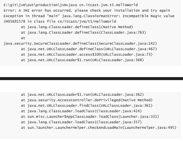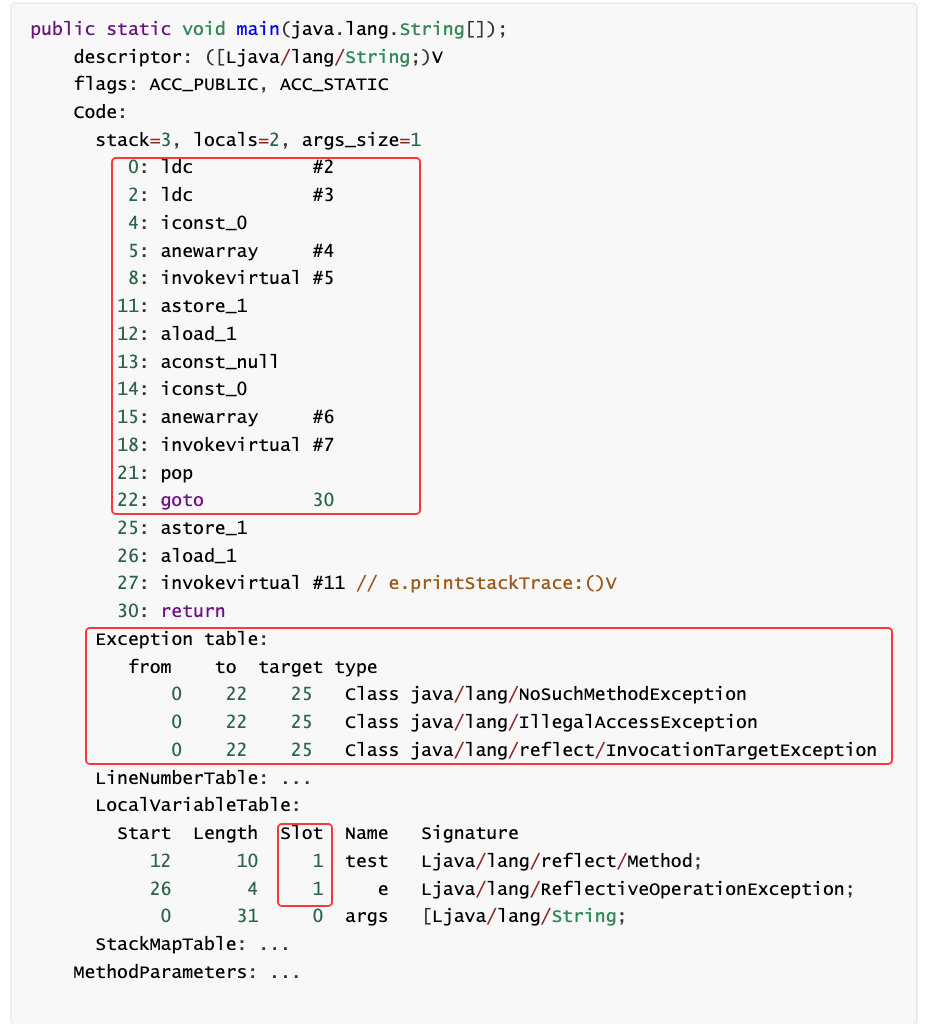 1 2 3 4 5 6 7 8 9 10 11 12 13 14 15 16 17 18 19 20 21 22 23 24 25 26 27 28 29 30 31 32 33 34 35 36 37 38 39 40 41 42 43 44 45 46 47 package sun.reflect;import cn.itcast.jvm.t3.reflect.Reflect1;import java.lang.reflect.InvocationTargetException;import sun.reflect.MethodAccessorImpl;public class GeneratedMethodAccessor1 extends MethodAccessorImpl { public Object invoke (Object object, Object[] arrobject) throws InvocationTargetException { block4: { if (arrobject == null || arrobject.length == 0 ) break block4; throw new IllegalArgumentException (); } try { Reflect1.foo(); return null ; } catch (Throwable throwable) { throw new InvocationTargetException (throwable); } catch (ClassCastException | NullPointerException runtimeException) { throw new IllegalArgumentException (Object.super .toString()); } } }