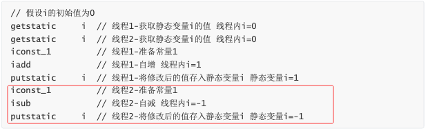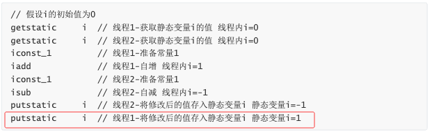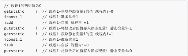 - 例如对于 i++ 而言(i 为静态变量),实际会产生如下的 JVM 字节码指令: