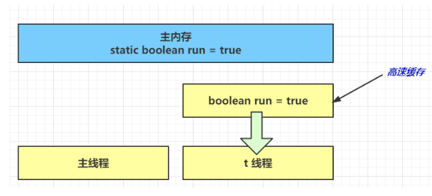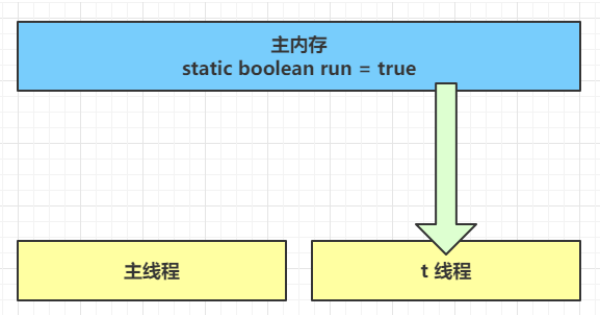 - 初始状态, t 线程刚开始从主内存读取了 run 的值到工作内存。