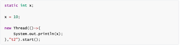- 对变量默认值(0,false,null)的写,对其它线程对该变量的读可见