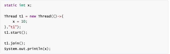 - 线程 start 前对变量的写,对该线程开始后对该变量的读可见